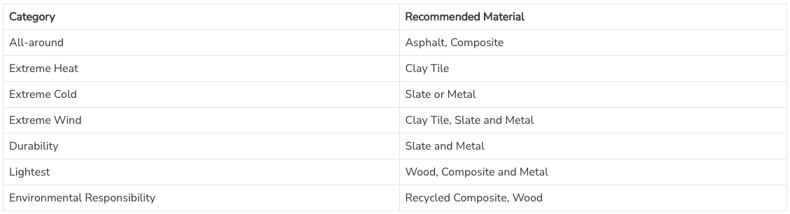 Similar to roofing materials, there are a number of different siding materials that can complement your roof. Roofers often work hand in hand with carpenters to install products like wooden shingles, cedar, clapboards, and other wood type materials. Know that you aren’t limited to wood siding. There are many different types of siding including vinyl, clapboard, a clapboard blend, slate, metal, and clay. The table below can help identify which material is right for you depending on climate and other environmental factors. Cost can vary significantly between products. We recommend contacting us directly for most up to date pricing and custom quotes.